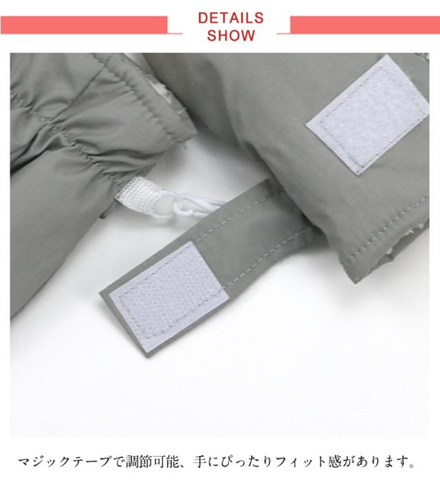 | 女の子男の子を問わずお使いいただけるミトン手袋 裏側にはモコモコ裏起毛があり、柔らかく暖かくて手を寒さからしっかり保護してくれます。 指が分かれていないミトンタイプなので、指先から手の甲まで暖かさアップ! マジックテープで調節可能、手にぴったりフィット感があります。 使わない時は繋げて持ち運びできるので、片手だけ迷子になる心配なし。 寒い冬の雪遊び、自転車、スキー、スノーボード、ウィンタースポーツ、通園、通学などに大活躍です! | |