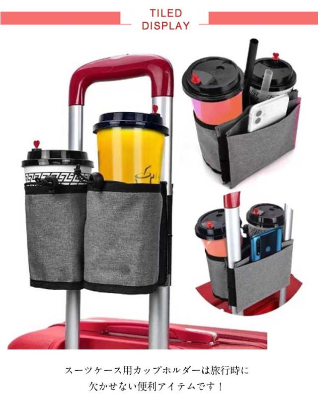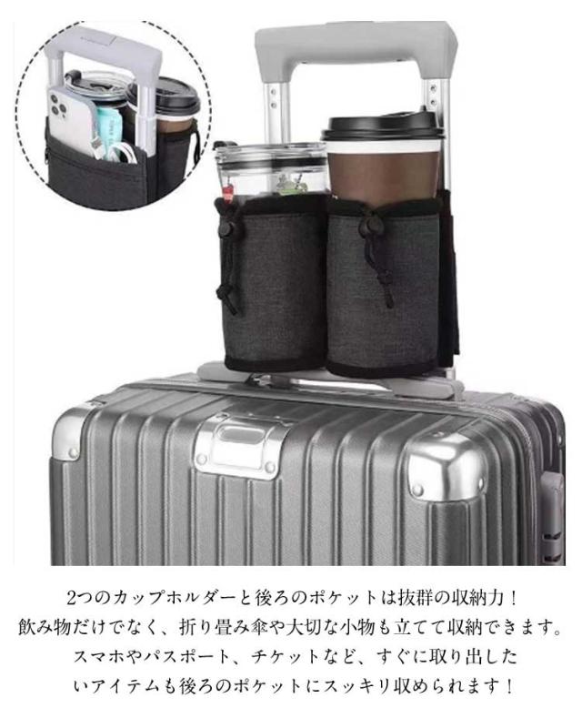 ドリンクホルダー ボトルホルダー スーツケース用 2個置き ボトルケース コンパクト ペットボトルホルダー コーヒー カップホルダー 小物入れ 水筒 旅行 トラベル スーツケース カップホルダー キャリーケース スーツケース用 便利グッズ 雑貨 旅行グッズ 出張