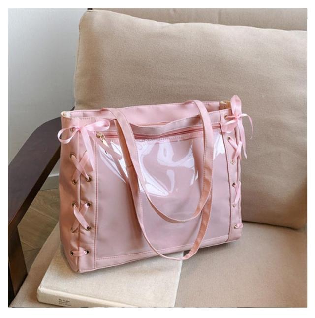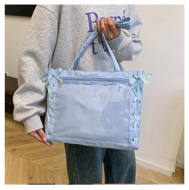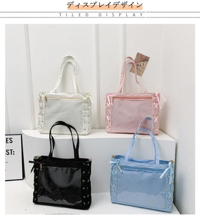 痛バッグ a4 ショルダー レースアップ ぬいぐるみ 透明 クリア バッグ 推し活 バッグ 痛バ ショルダーバッグ トート 2way おしゃれ ぬいポーチ 缶バッジ 見せる 大容量 見せバッグ 軽い 軽量 展示 持ち歩き 推し 推しバッグ 推し活バッグ イベント