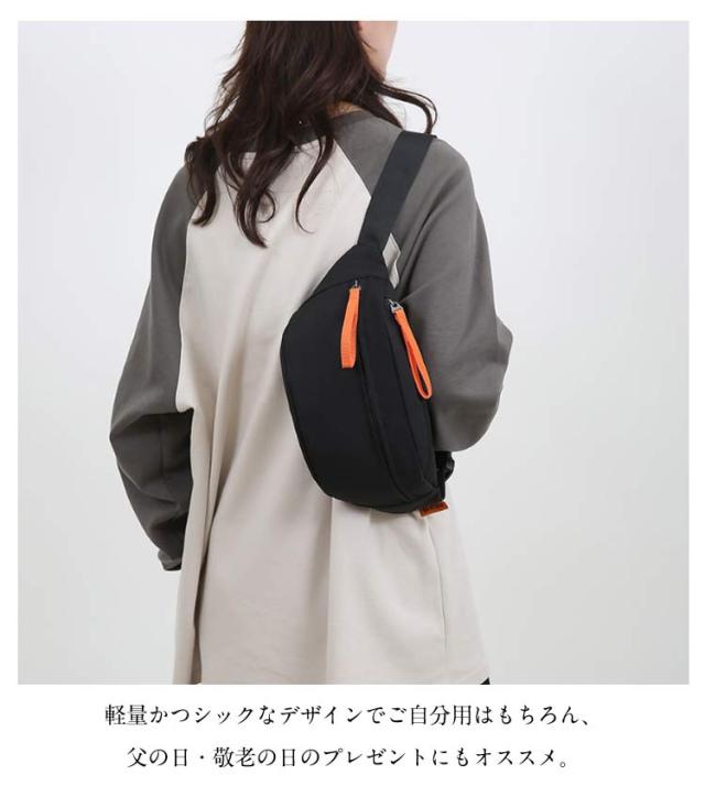 | スタイリッシュでおしゃれなボディバッグ! 財布や携帯電話、鍵や手帳などの最小限の身の回りの物をすっきりと収納できます。 そのスタイリッシュなデザインからは、予想外の収納力を兼ね備えています。 丈夫なナイロンを使い、長くご愛用いただけます♪ 自転車に乗るときや旅先でのご使用、近所に出掛けるときのワンマイルバッグとしてもおすすめ! 軽量かつシックなデザインでご自分用はもちろん、父の日・敬老の日のプレゼントにもオススメ。 | |