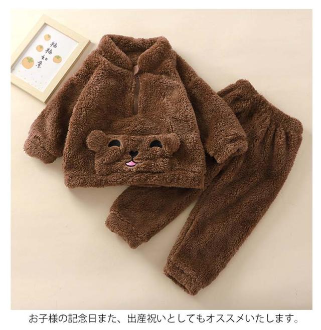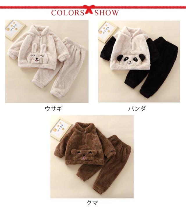 くま柄 ベビー パジャマ 秋冬 上下セット セットアップ モコモコ ふわふわ ルームウエア ウサギ パンダ 女の子 男の子 防寒 寝間着 お出かけ 部屋着 寝巻き ナイトウェア 柔らかい 暖かい 厚手 ベビー 赤ちゃん 秋 冬 秋冬 秋服 冬服