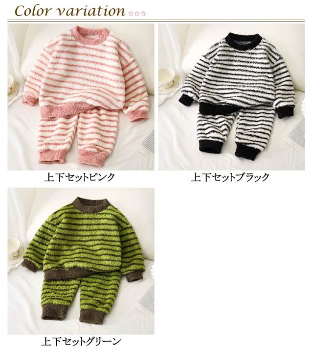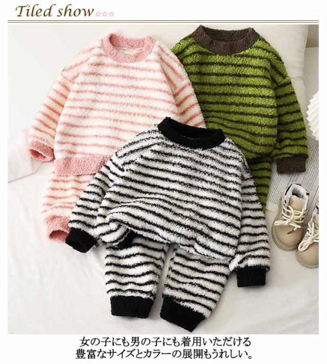 冬パジャマ セットアップ ジュニア フランネルパジャマ キッズパジャマ 部屋着 男の子 パンツ 暖かい 秋冬 長袖 女の子 キッズパジャマ 厚手 ボーター柄 セットアップ パジャマ ルームウェア ボトムス もこもこ ボア 寝巻き ナイトウェア ストライプ 小学生 大人
