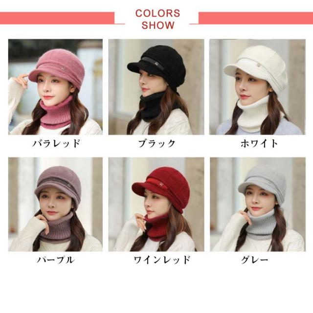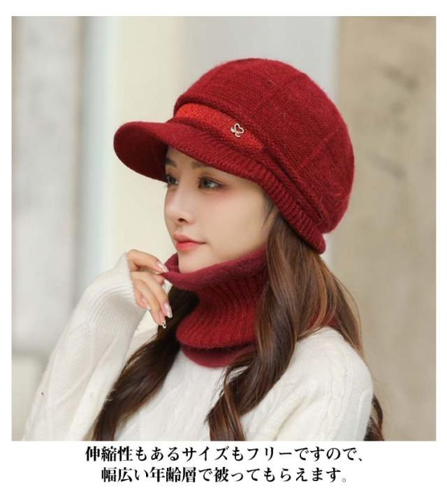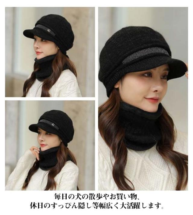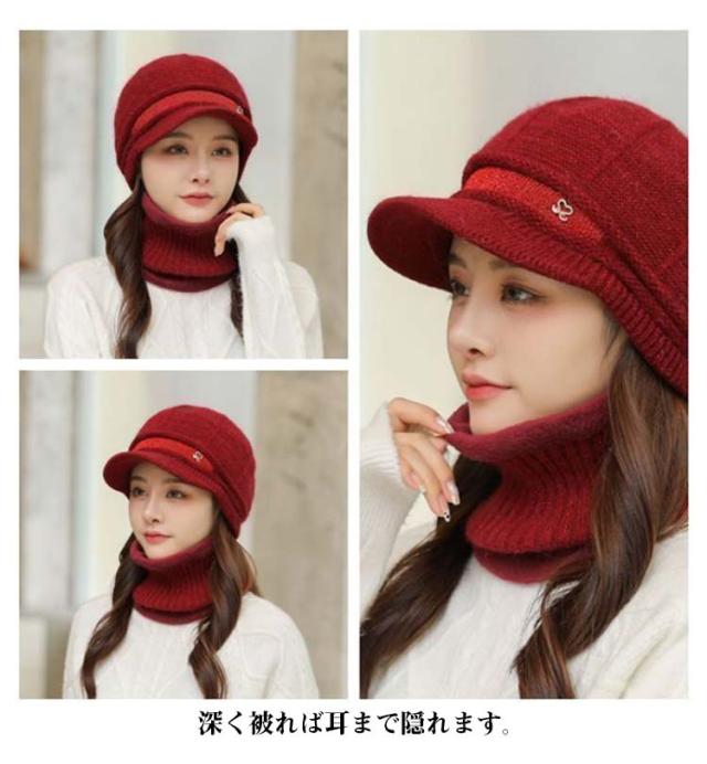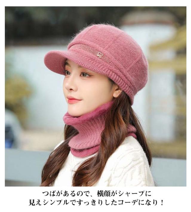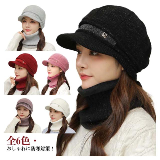 ニット帽子 つば付き 秋冬 保温 冬 レディース ニット帽 ネックウォーマー付き 2点セット 雪 防寒 帽子 耳まで隠れる ニットキャップ つば付き帽子 ニット キャスケット きれいめ 小顔効果 ニットキャップ帽子 ぼうし 外出用 女性 防風 かわいい ギフト プレゼント 送料無料