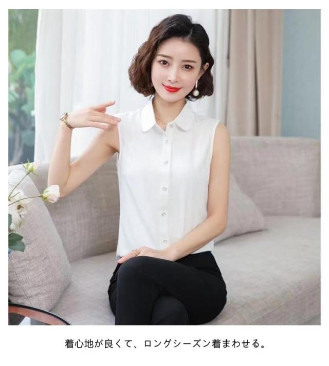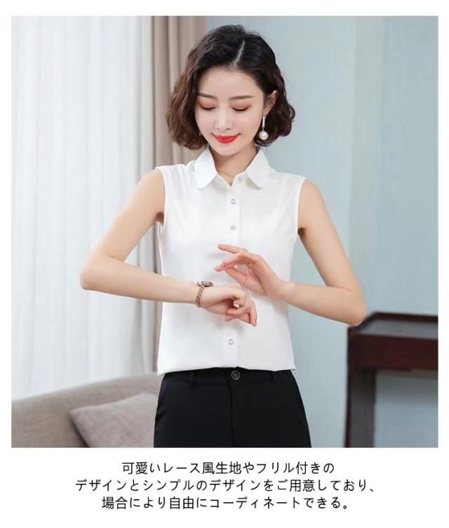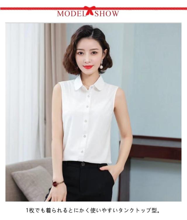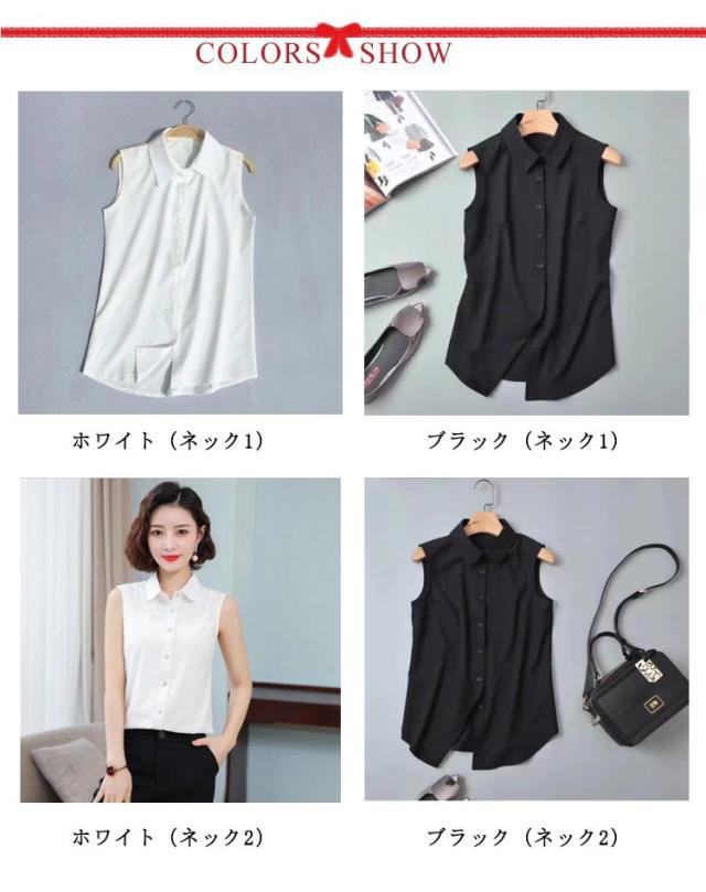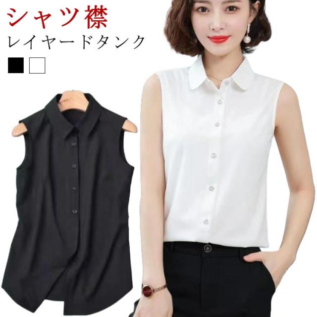 インナーシャツ タンクトップ ノースリーブ シャツ 襟付き 通勤 襟付き レディース ブラウス 重ね着 ワイシャツ シャツブラウス Yシャツ スーツ インナー ブラウス 黒 ブラック 白 シフォンシャツ 秋 冬 春 夏 OL タンクトップ レイヤード 無地