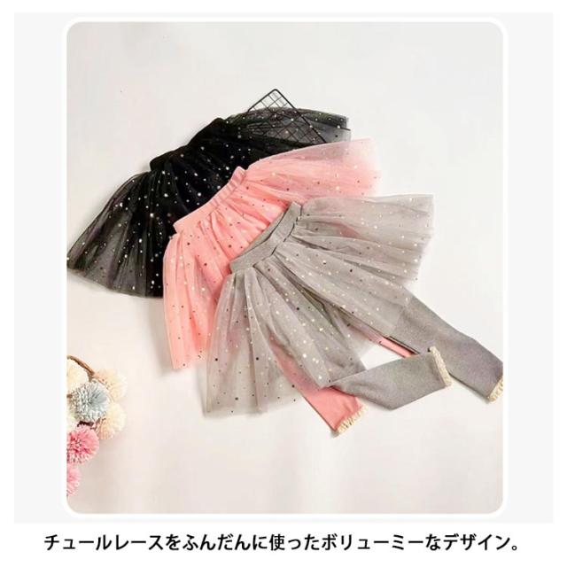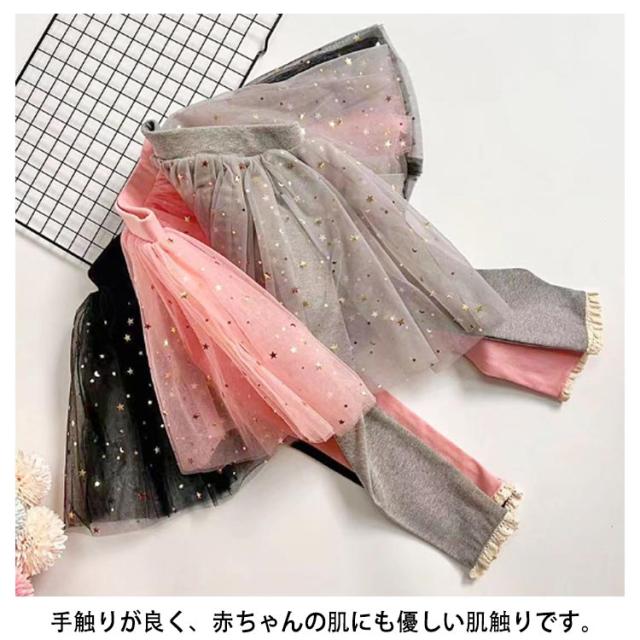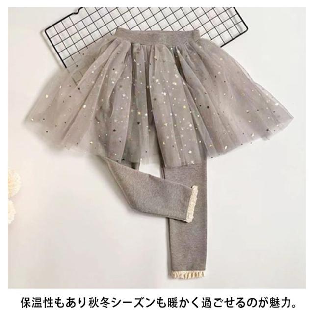 | レギンス付きスカート 90-130cm チュールレースをふんだんに使ったボリューミーなデザイン。 伸縮性抜群のレギンスでどんなに動いてもOK。 手触りが良く、赤ちゃんの肌にも優しい肌触りです。 保温性もあり秋冬シーズンも暖かく過ごせるのが魅力。 | |