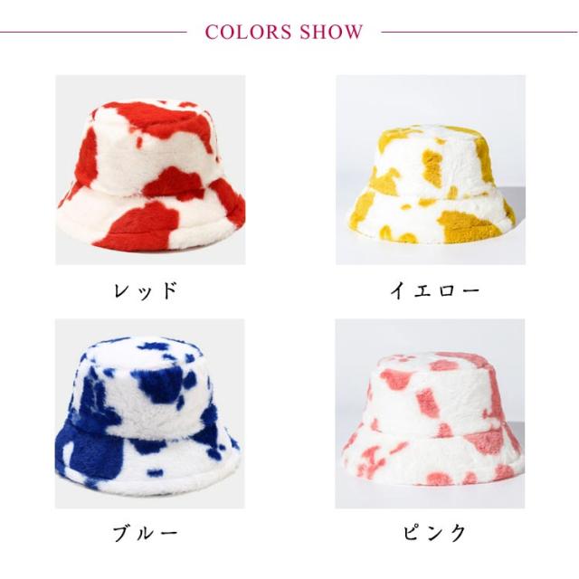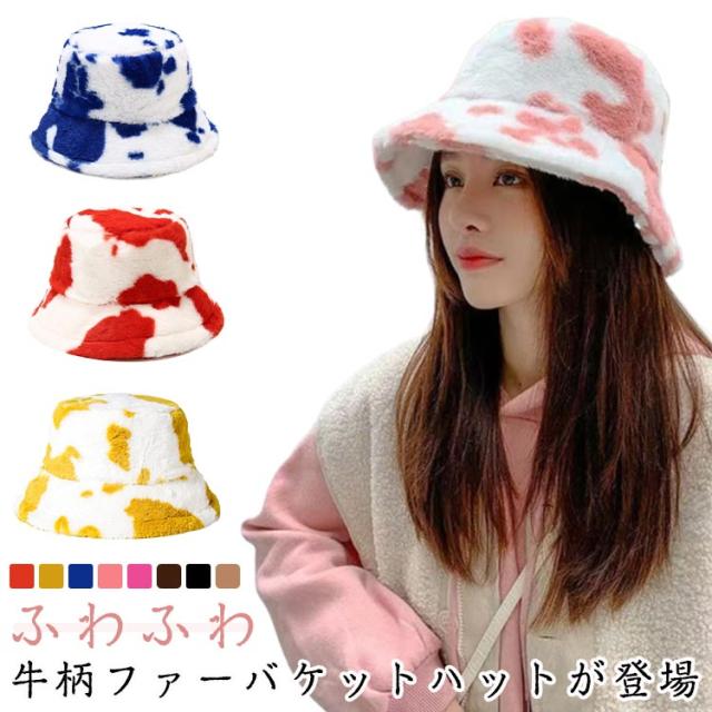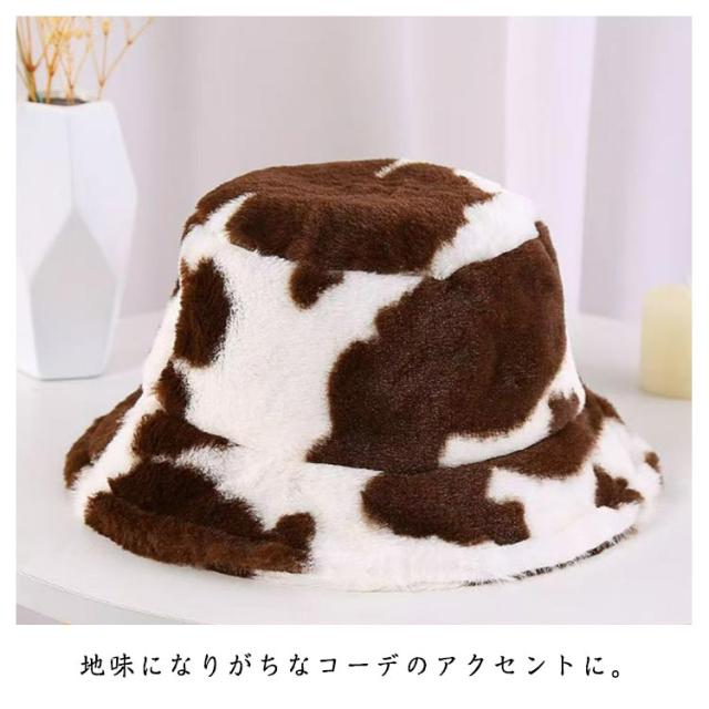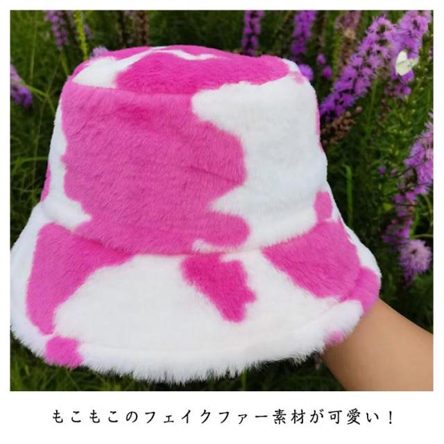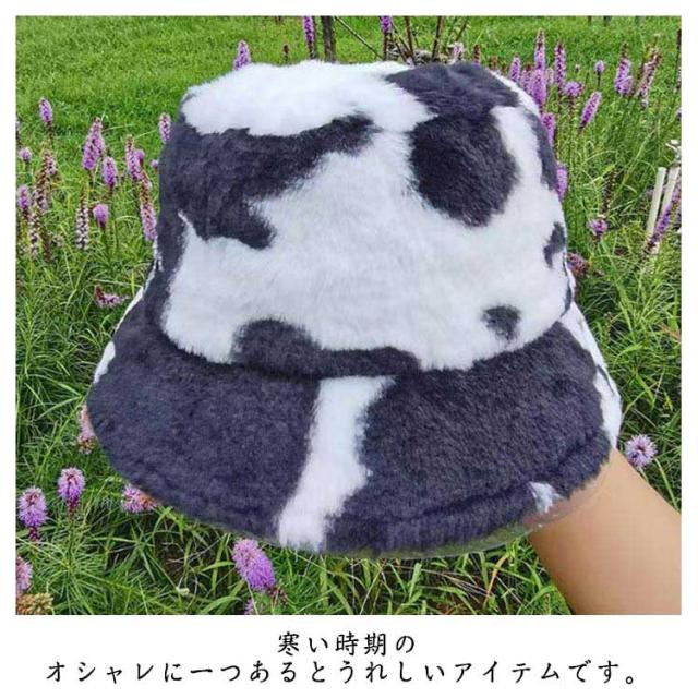 かわいい バケットハット フェイクファー ボアハット あったかい 秋冬 アニマル柄 帽子 ウシ柄 レディース アニマル柄 ボアハット 小顔 ファー ウシ柄 フェイクファーバケットハット 総柄 総柄 帽子 ファー 秋冬 あったかい