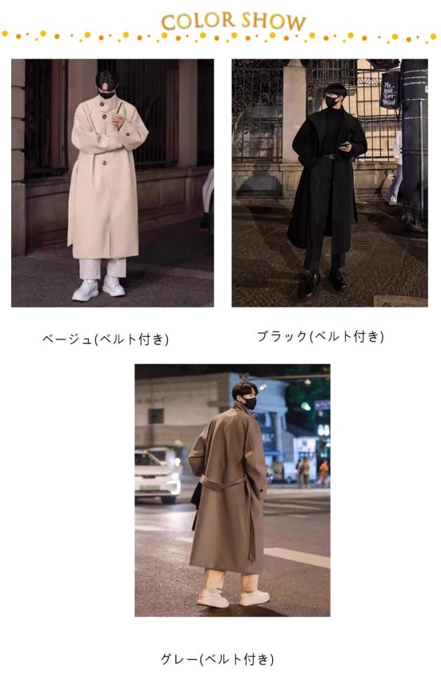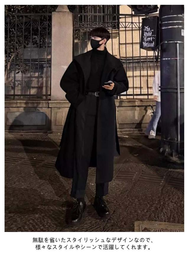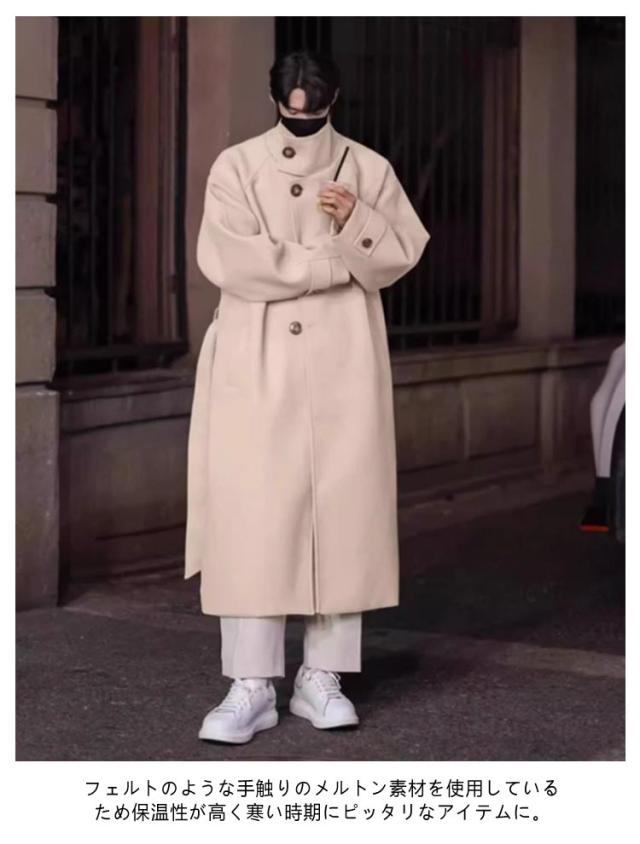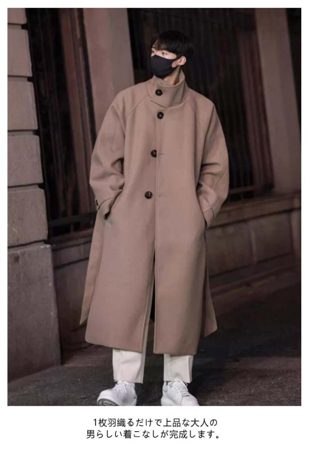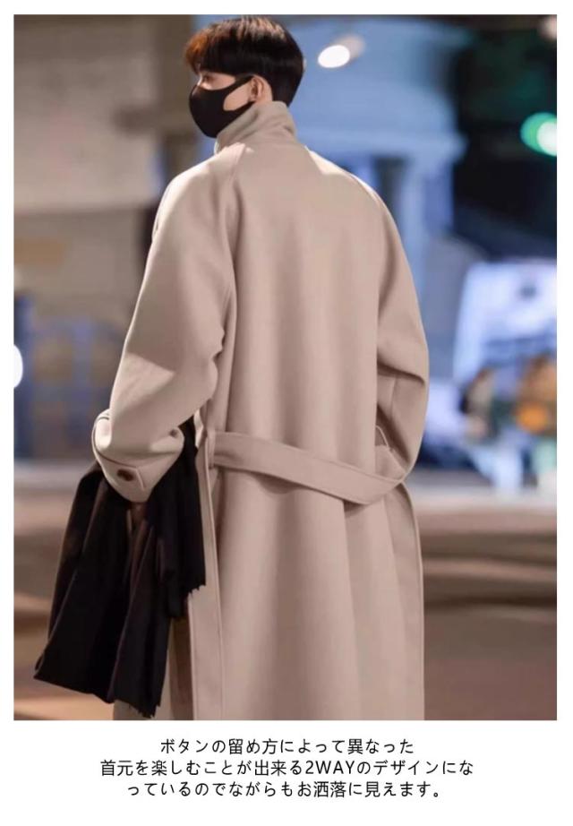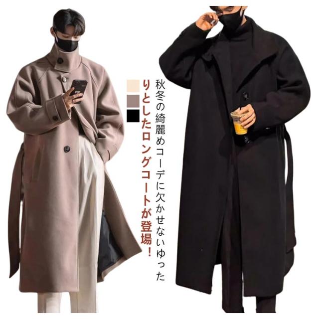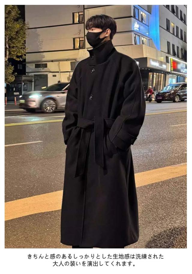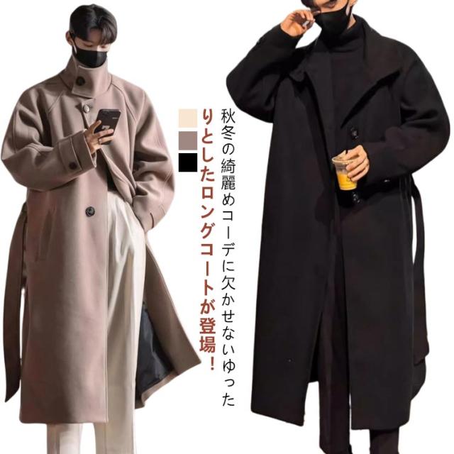 ベルト付き ロングチェスターコート 大きいサイズ チェスターコート メルトン メンズ ビジネスコート 襟高 20代 ロングコート コート 暖かい 防寒 無地 コート アウター 紳士服 仕事 通勤 ロングチェスターコート 30代 40代 男性 男 服 秋 冬 秋冬
