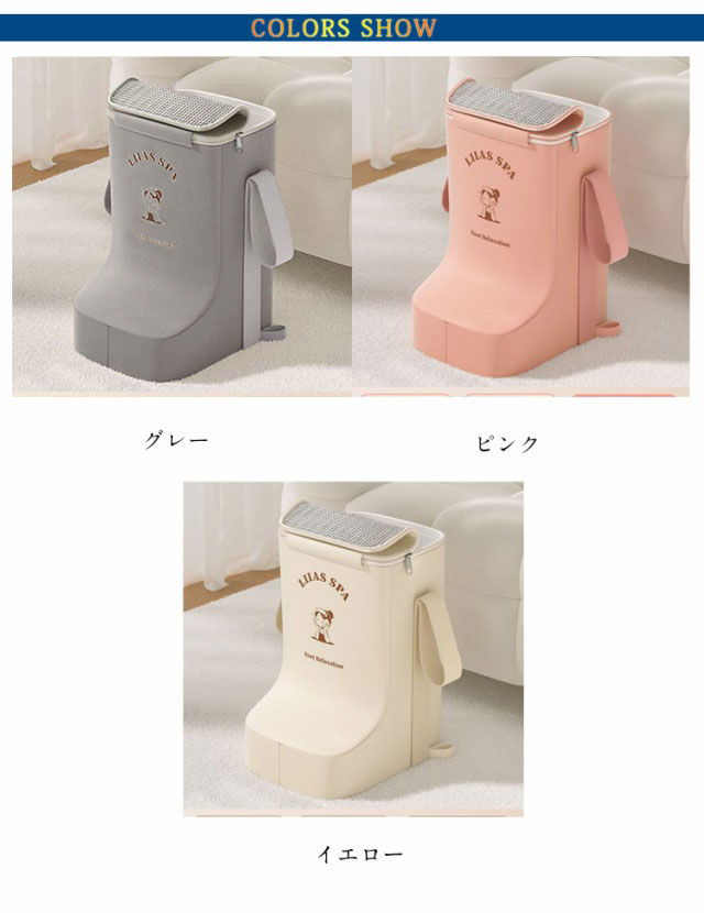 | 折りたたみ式でかんたん持ち運び便利!折りたたみ式靴型足湯バケツ 人体工学設計によって、足のカーブに合わせて水を節約 膝下までしっかりと浸かることができるから深めのデザイン、普通のフットバスより効果UP。 コンパクトに折り畳める深めのバケツ、持ち運びとっても便利で、旅先や出張先も足湯を楽しむことができるフットバス。 底面は磨耗に強い素材、長持ちできる安心折りたたみバケツ。 蓋付きで熱をしっかりと閉じ込めるから保温効果が更にアップ。 アウトドアスポーツ、ピクニック、小物の収納、キャンプ、漂流、ハイキング、または他の野外活動に適しています。ン | |