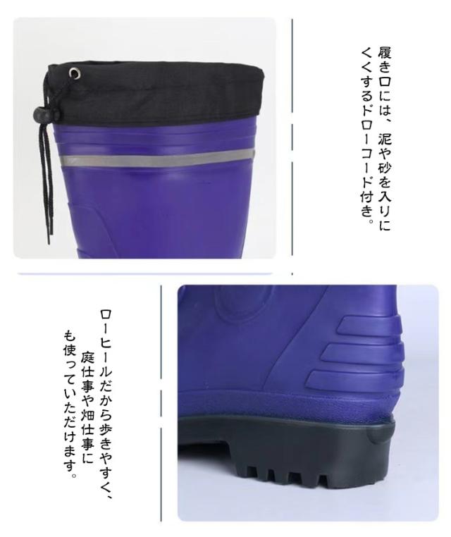 | 24.5-27.5cm!裏ボアで足の指先まで暖かいレインブーツ。 保温効果もバッグンで、寒い時も足元をあたたかく過ごせます! 防水性のある素材をしよしているので、雨の日でも足元が濡れる心配がありません。 履き口には、泥や砂を入りにくくするドローコード付き。 ローヒールだから歩きやすく、庭仕事や畑仕事にも使っていただけます。 ま先部分もしなやかに曲がるので、 立ち座りの多いガーデニングや農作業などの作業に最適です。 | |