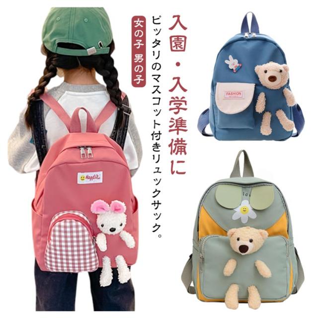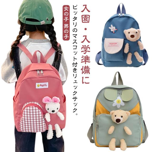 マスコット付き 遠足 鞄 うさぎ 女子 バックパック ぬいぐるみ クマ リュック リュックサック カバン こどもリュック リュックサック 女の子 かわいい ベビー くま 男の子 リュック 通学 キッズ 旅行 ランドセル 通園バッグ 小学生 幼稚園 保育園 低学年