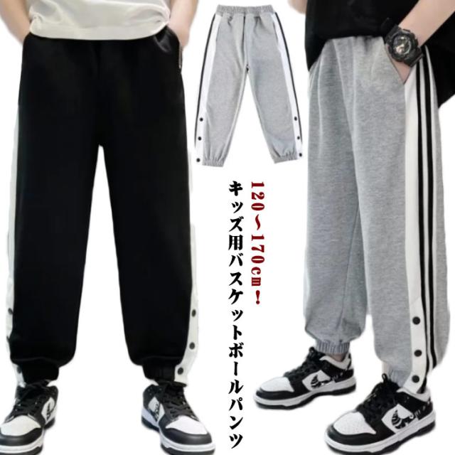 裾ボタン 女の子 ジュニア 男の子 バスケパンツ バスパン バスケットボールパンツ 130 ボア ジャージパンツ サイドライン スナップボタン 長ズボン キッズ バスケットボールパンツ 下 スポーツ 120 ジャージ 140 150 160 170