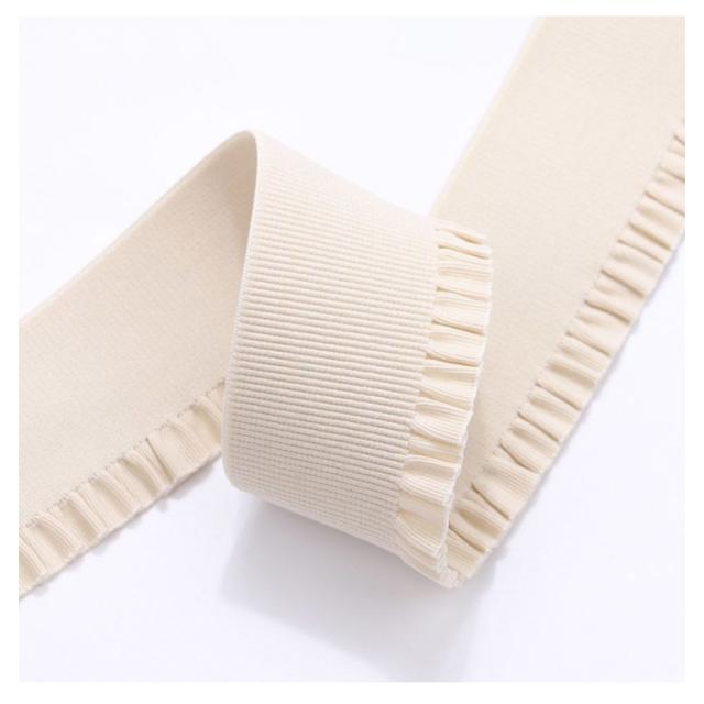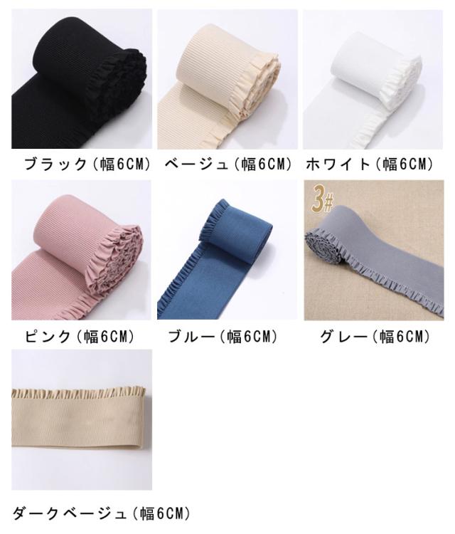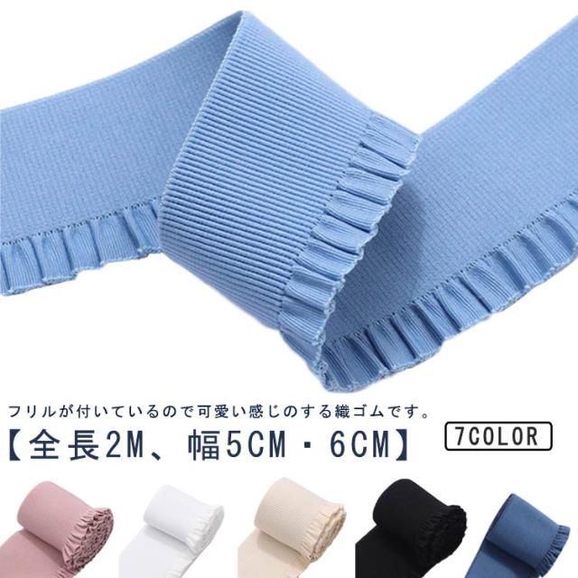 | フリルが付いているので可愛い感じのする織ゴムです。【全長2m、幅5cm・6cm】 可愛い女性用パンツやスカート、ラッピング用(包装資材等)、下着等に使用されます。 | |