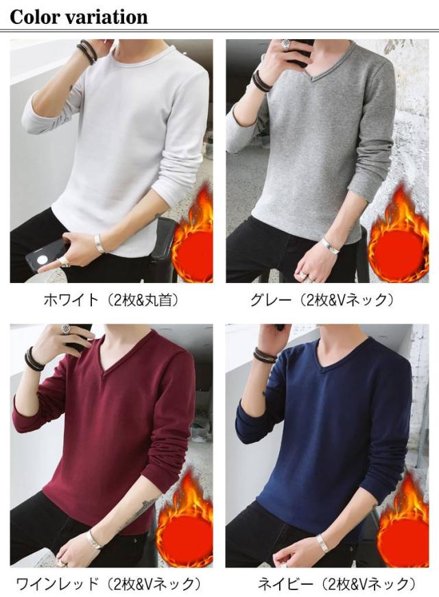 【2枚セット】 インナー メンズ ヒートテック 裏起毛 極暖 裏起毛 アンダーウェア あったかインナー 防寒 肌着 Tシャツ Vネック ロンT 【2枚セット】 インナーシャツ 丸首 クルーネック 春 秋冬 保温 発熱 インナー アンダーウェア