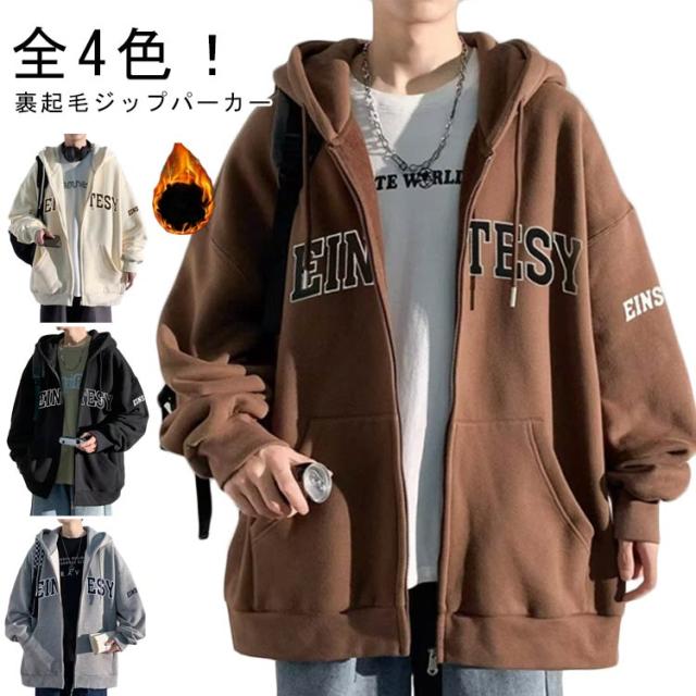 メンズ ジップパーカー 裹起毛 秋冬 ジップアップパーカー パーカー ジップパーカー ゆったり フード付き 防寒 暖かい アウター 上着 保温 フルジップ おしゃれ 英字ロゴ 大きいサイズ 秋 冬 春