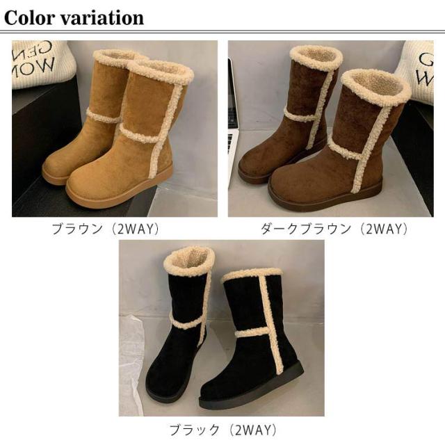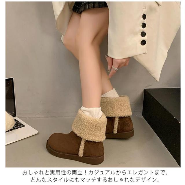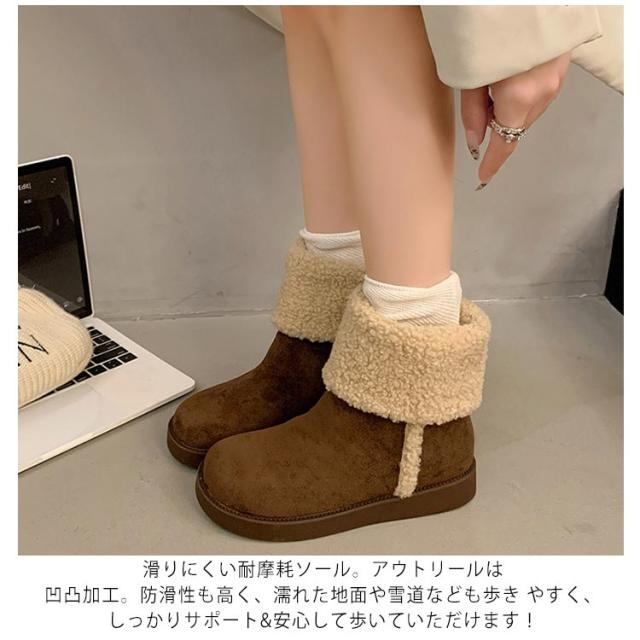 厚底 ムートンブーツ 秋冬 防寒 裏起毛 スノーブーツ レディース 通勤 雪靴 保温 裏ボア 滑らない スノーブーツ 冬用 スノーシューズ 暖かい 2WAY ショート丈 撥水 ウィンターブーツ ミドル丈 もこもこ 靴 シューズ 綿靴 通学 雪用ブーツ 女性用 おしゃれ ブラウン