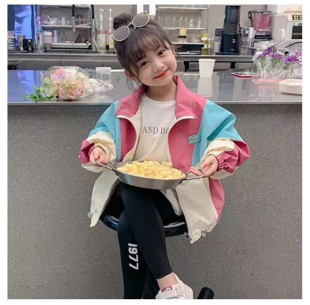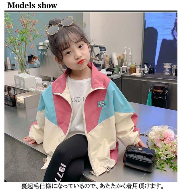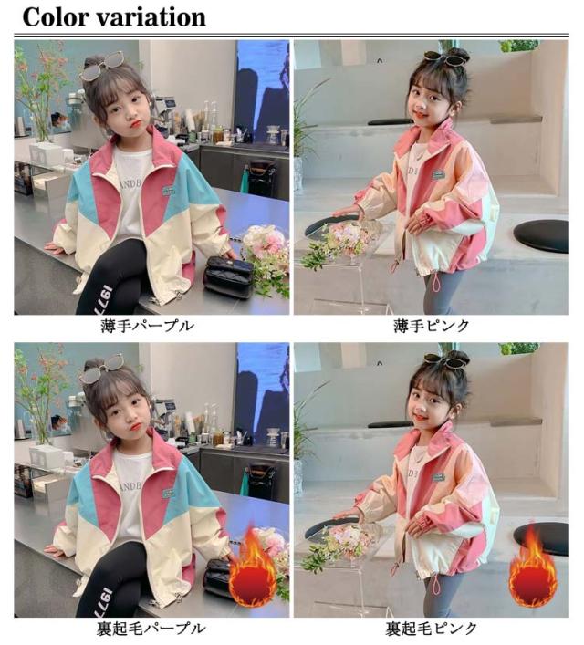 春アウター キッズ 女の子 厚手 秋 薄手 トップス ウィンドブレーカー 子供服 ジャンパー ジャケット ジャンパー 裏起毛 冬 春 秋冬物 防寒 アウター ジップアップ マウンテンパーカー 配色 切り替え お洒落 ブルゾン ガールズ 防風 カジュアル 90 100 110 120 130 140