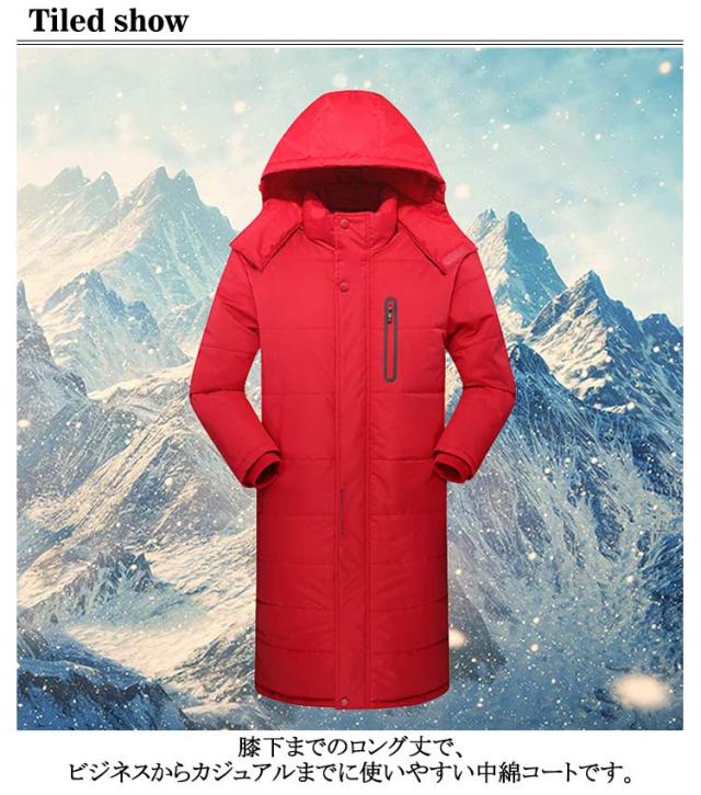 | 【防風/防雨/防汚】寒い冬の防寒対策として活用する裏起毛中綿コート。 裏地は裏起毛で、あったか仕様。 膝下までのロング丈で、ビジネスからカジュアルまでに使いやすい中綿コートです。 表地がしっかりしているポリエステル素材を使って、長く愛用できます! 雨の日でも安心な撥水加工◎。 中綿には軽量で膨らみのあるタイプを使用していますので、見た目よりも軽く、包み込まれるような着用感があります。 イベントからタウンユースまで、真冬の防寒はこれ一着で大丈夫。 | |