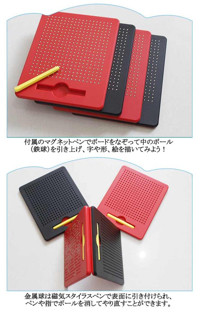 | 子どもの知育玩具男の子と女の子を問わず、だれでも簡単におえがきを楽しめる子供のおもちゃ。子供たちは想像力を使って絵、形、文字、数字を描くことができます! プラスティック製のボードに、磁石内蔵ペンで遊びます。 付属のマグネットペンでボードをなぞって中のボール(鉄球)を引き上げ、字や形、絵を描いてみよう! 金属球は磁気スタイラスペンで表面に引き付けられ、ペンや指でボールを消してやり直すことができます。 大人も子供も楽しく遊べる知育玩具のマグネットタブレットです。 周りやお洋服を汚さずに遊べるので、安心です◎ 何度でも描くことができて楽しいです♪ お誕生日プレゼントやクリスマスプレゼント、入学祝い・卒業祝いにも最適です。 | |