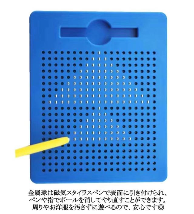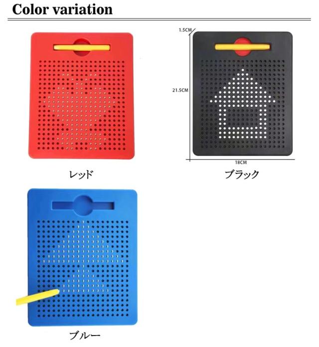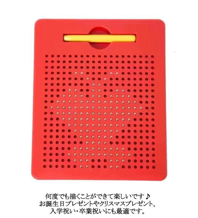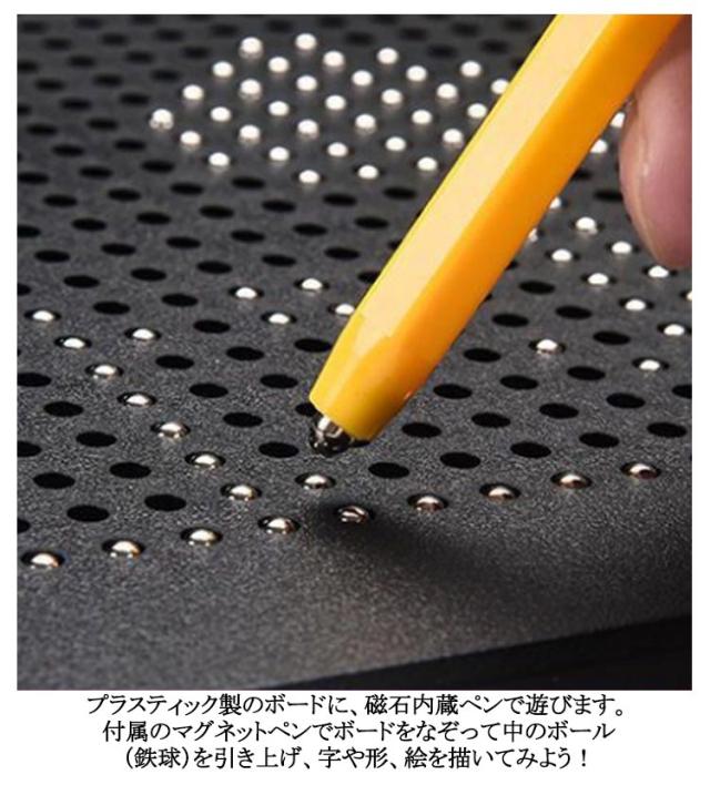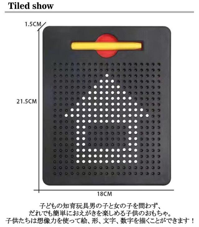 | 子どもの知育玩具男の子と女の子を問わず、だれでも簡単におえがきを楽しめる子供のおもちゃ。子供たちは想像力を使って絵、形、文字、数字を描くことができます! プラスティック製のボードに、磁石内蔵ペンで遊びます。 付属のマグネットペンでボードをなぞって中のボール(鉄球)を引き上げ、字や形、絵を描いてみよう! 金属球は磁気スタイラスペンで表面に引き付けられ、ペンや指でボールを消してやり直すことができます。 大人も子供も楽しく遊べる知育玩具のマグネットタブレットです。 周りやお洋服を汚さずに遊べるので、安心です◎ 何度でも描くことができて楽しいです♪ お誕生日プレゼントやクリスマスプレゼント、入学祝い・卒業祝いにも最適です。 | |