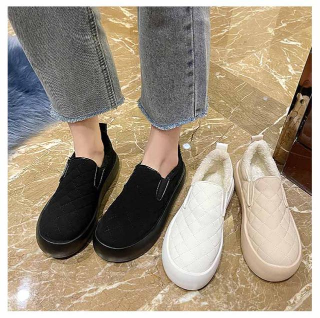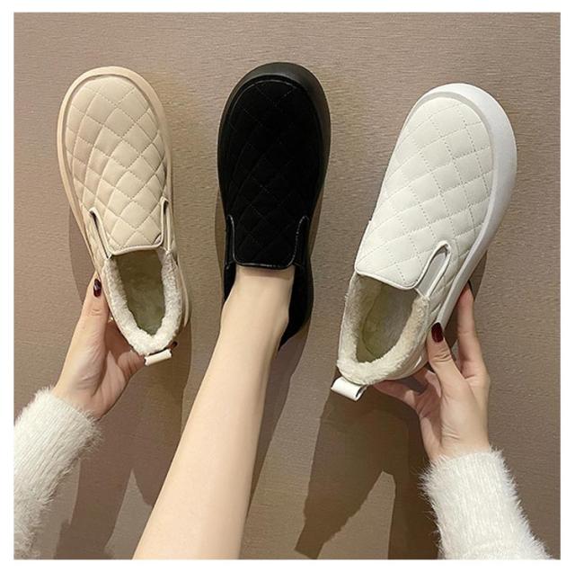 裏起毛 スリッポン スニーカー 通学靴 冬 ボアスリッポン レディース もこもこ 防水 スリッポン 革靴 ムートンシューズ スリッポン 厚底 カジュアルシューズ 秋冬靴 サイドゴア スニーカー 靴 女性 暖か 保暖 保温 綿靴 防滑