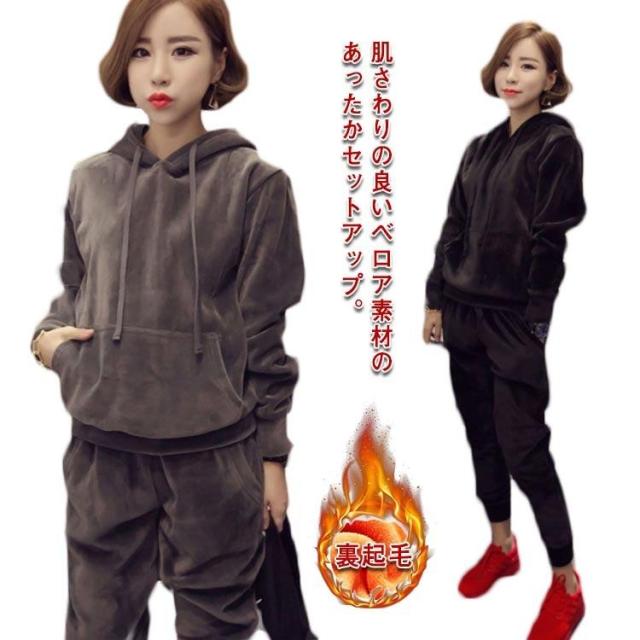 セットアップ パーカー ジャージ スウェット 上下セット レディース トレーナー スエット ベロアジャージ 裏起毛 厚手 長袖 フード付き 秋冬