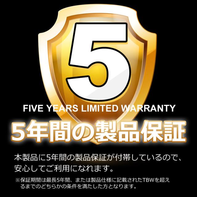 保証期間:5年間(保証は、最初の購入日から5年間、または製品データシート上に記載されている最大書き込みバイト総数2400Terabytesが書き込まれるまでのうち、いずれか早く到達する日まで有効です。 ご購入前に必ずご確認ください。)
