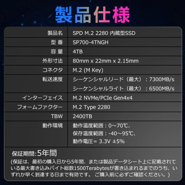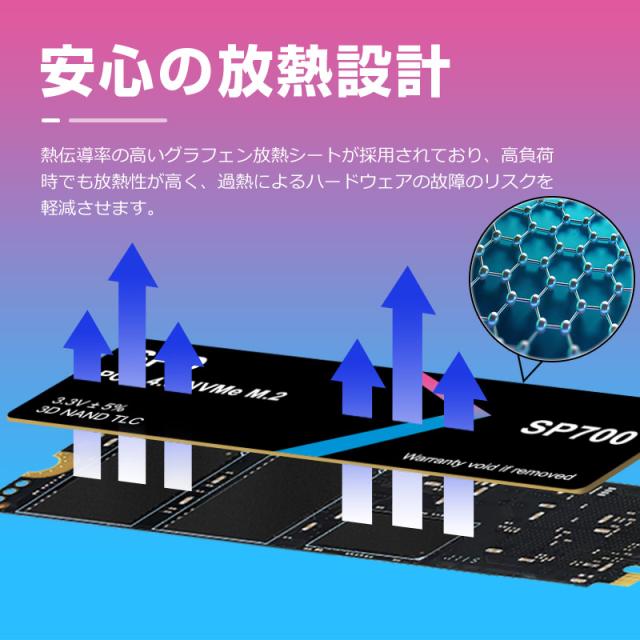 SPD SSD 4TB 【3D NAND TLC 】M.2 2280 PCIe Gen4x4 NVMe グラフェン放熱シート付き 新型PS5/ PS5動作確認済み R: 7300MB/s W: 6500MB/s 高耐久性 薄型 軽量 SP700-4TNGH【5年保証】ネコポス送料無料