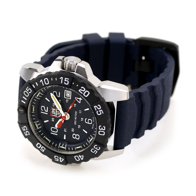 7年保証キャンペーン ルミノックス ネイビーシールズ RSC 3250シリーズ スイス製 メンズ 腕時計 3253.CB LUMINOX NAVY SEAL RSC 3250 SERIES アナログ ネイビー ◆LUMINOX(ルミノックス)は1989年に創業。高性能なスポーツラインを展開しており、ラテン語で「明るい夜」を意味するブランド名を掲げているように、最先端の発光と視認性の良さを特徴としています。極限の状況下で行われるミッションで必要となる視認性を確保しているルミノックス時計は、特殊軍用時計として絶対的な信頼感を得ています。 海軍部隊「Navy SEALs」のニーズをうけて誕生したモデル。ダイバーズモデルならではの逆回転防止ベゼルには、原点モデルから採用される軽量性と強度に優れるCARBONOXを採用。軍用規格をクリアしたスペックを備え、ルミノックス・ライト・テクノロジーによりあらゆる状況下でも高い視認性を誇ります。