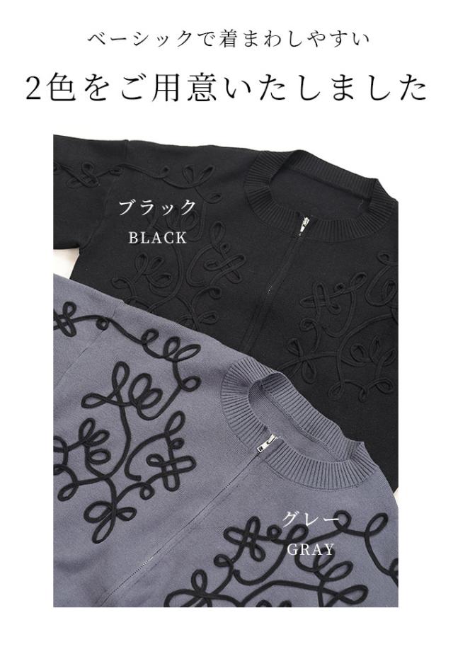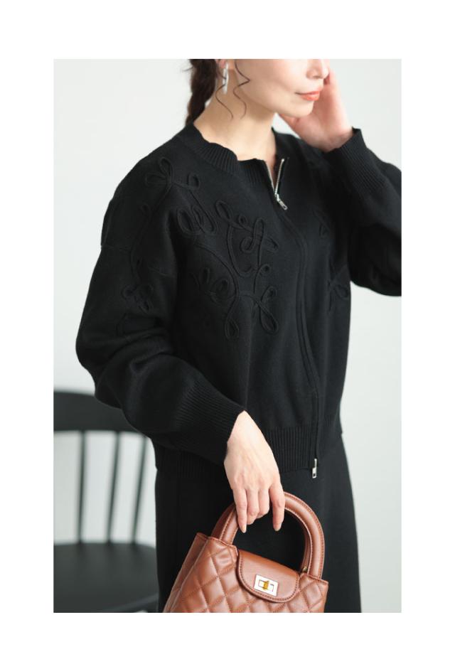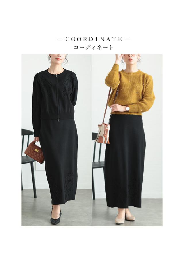 春新作 花模様コード刺繍のクールに決まるニットセットアップ レディース ファッション セットアップ 2点セット ブラック 黒 大人可愛い 40代 レディースファッション 50代女性 ファッション 60代 ミセスファッション サワアラモード sawaalamode otona mode-9786