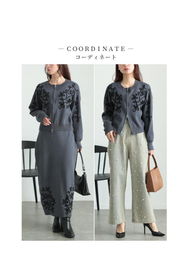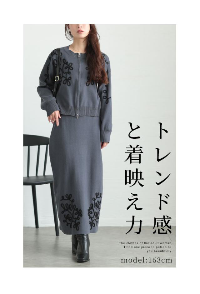 商品名: 花模様コード刺繍のニットセットアップ