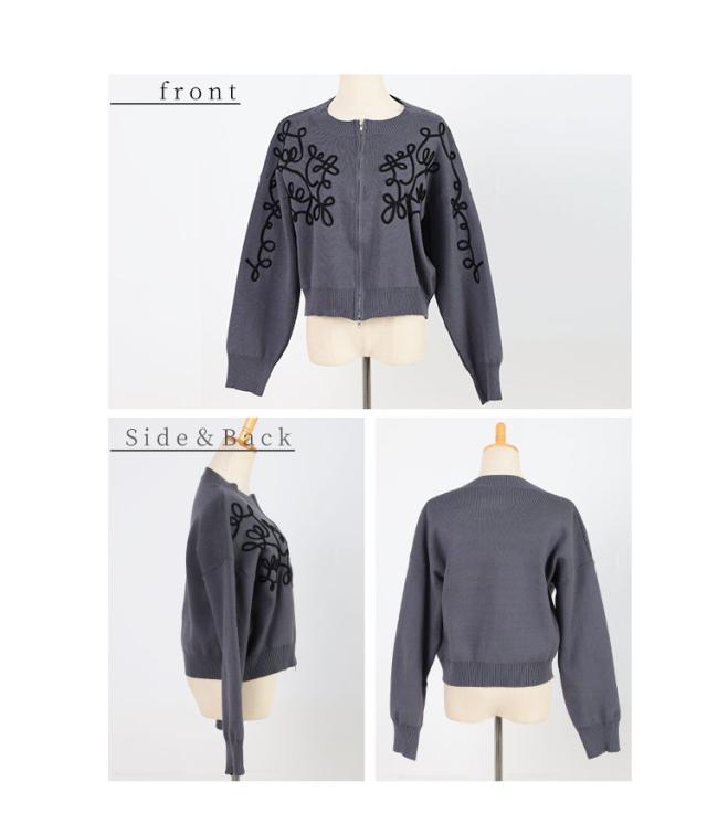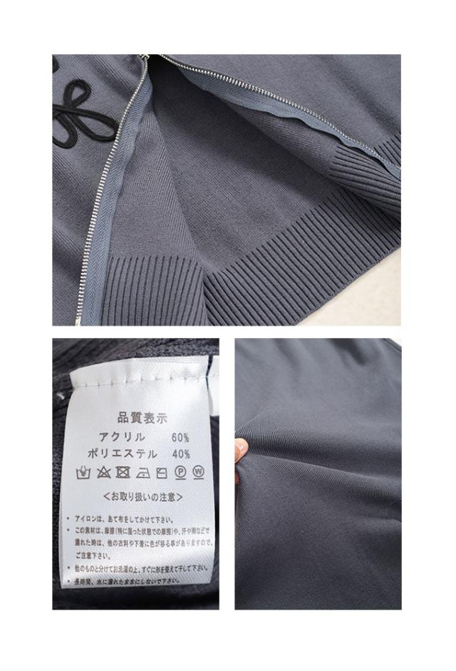 特徴: 刺繍 ニット ジップアップ ウエストゴム タイト