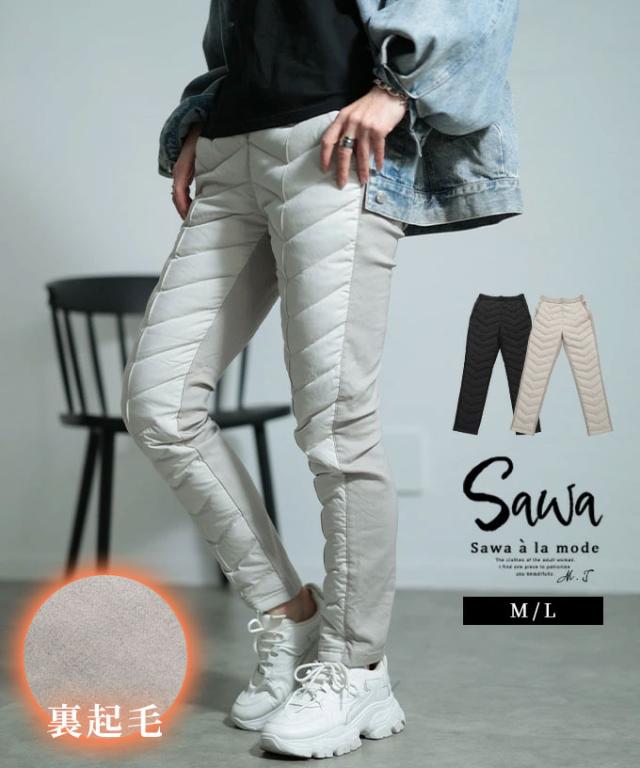 春新作 あったか美シルエットキルトダウンパンツ レディース ファッション パンツ キルティング ダウン フェザー ロング 裏起毛 無地 異素材 ウエストゴム 30代 40代 50代 60代 サワアラモード sawaalamode otona 大人 cawaii 可愛い 洋服 かわいい服 swna-0011