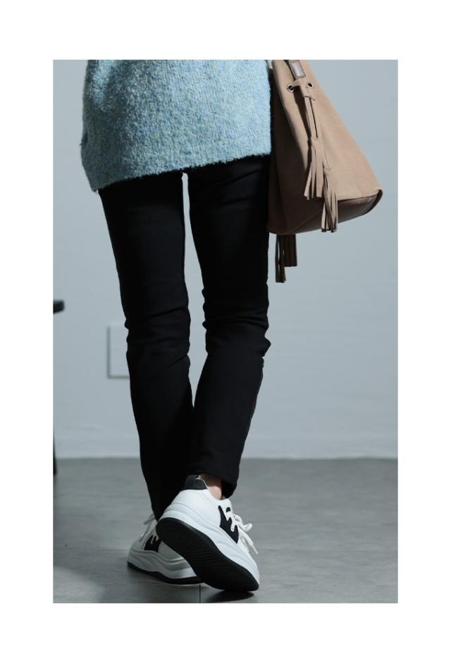 パンツ丈は股下68cmはくるぶしが隠れるくらい、ロングは床から3cmでした。ウエストは後ろギャザーゴムで、フロントは平ゴムになっていて楽な穿き心地でした。パンツ前面はダウン入りでとても温かいです。他の生地も裏起毛なので温かみがありました。シルエットはテーパードで脚のラインに沿う感じです。ストレッチが効くのでしゃがんでも楽でした。両サイドポケット付き、後ろポケットはフェイクです。