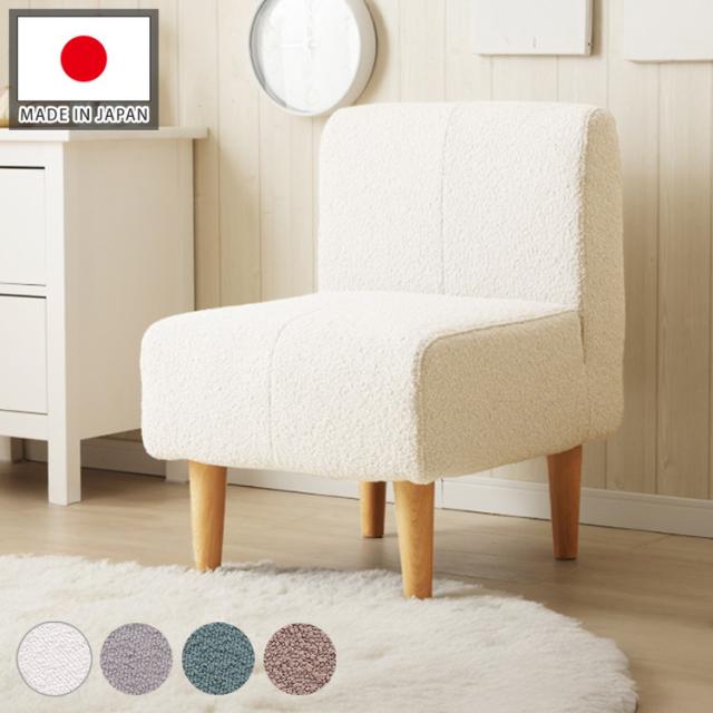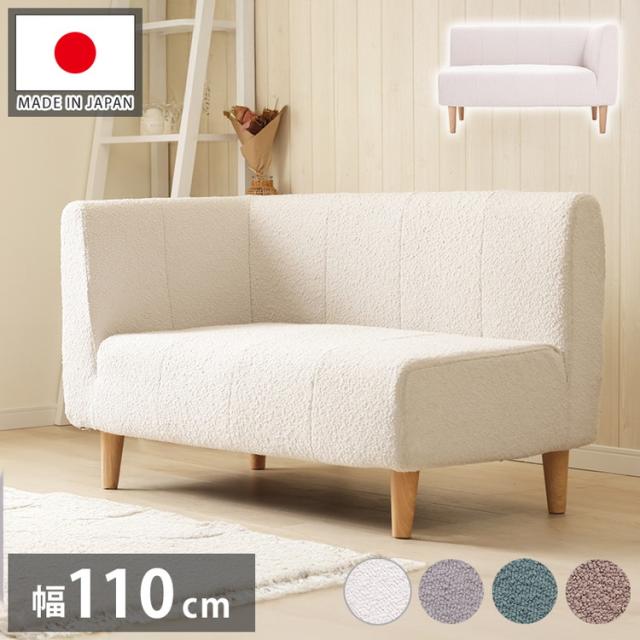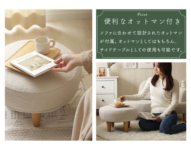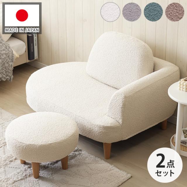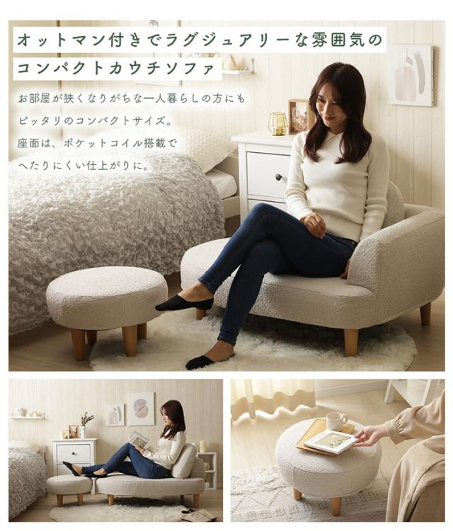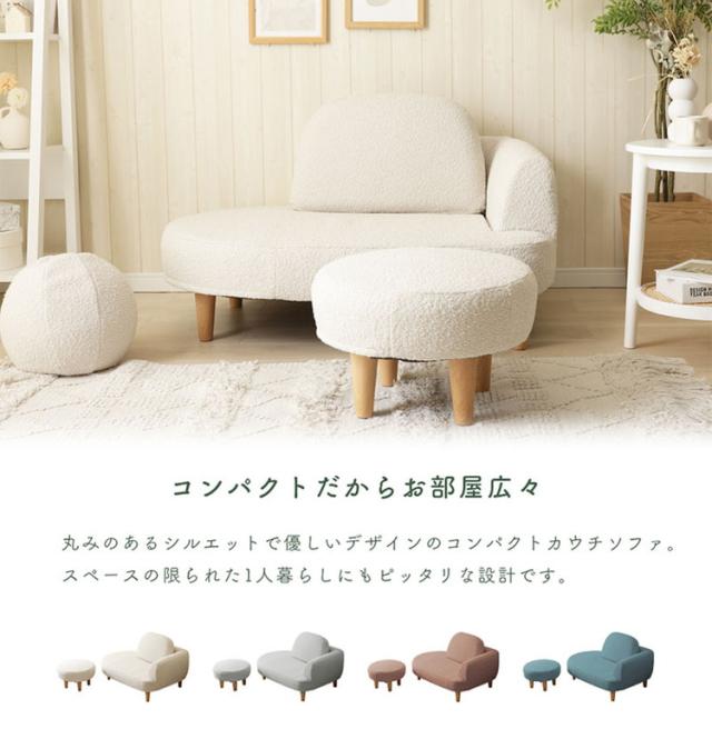 コンパクト カウチソファ ブークレ生地 日本製 一人掛けソファ ブークレ オットマン付き 脚付 ローソファ シンプル 1人暮らし ワンルーム ふんわり おしゃれ ゆったり 1P 国産 ソファー ソフ