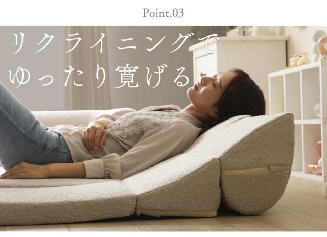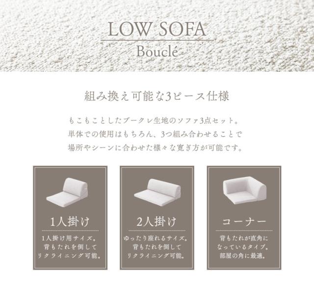 フロアソファ ローソファ ブークレ生地 3点セット 日本製 リクライニング 組み換え自在 ロースタイル ブークレ レイアウト自由 昼寝 シンプル おしゃれ モコモコ ふんわり 国産(代引不可)【