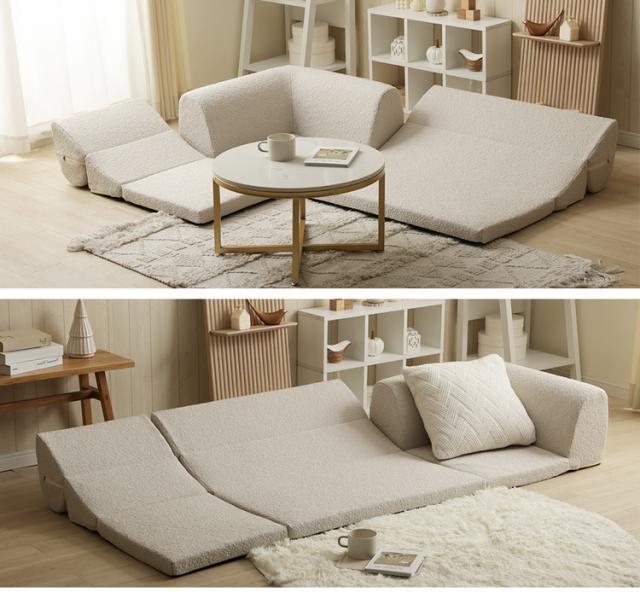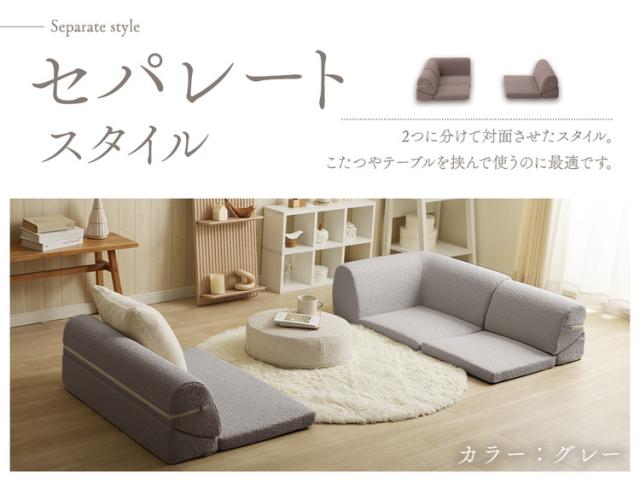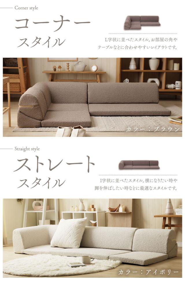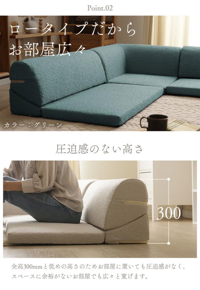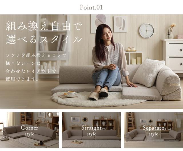 モコモコとした可愛らしい印象のブークレ生地の組み合わせ自由自在なコンパクトサイズのフロアソファ。