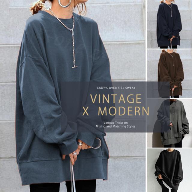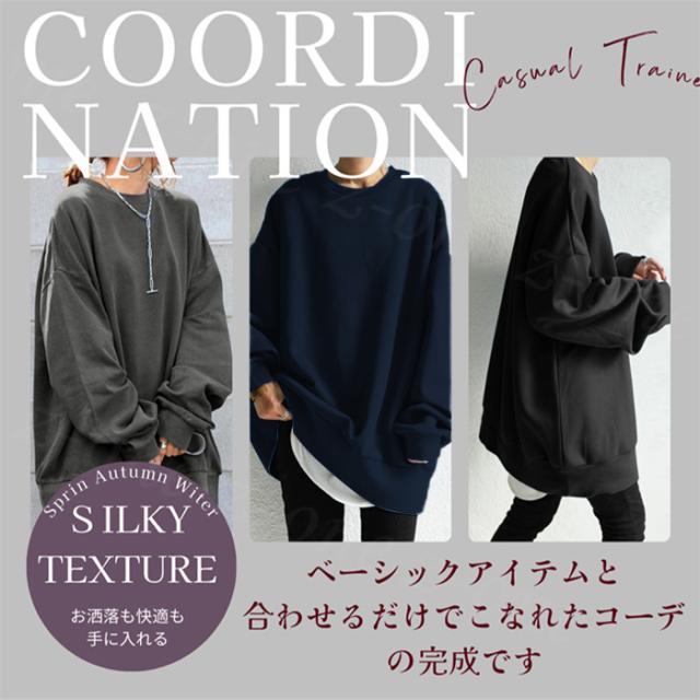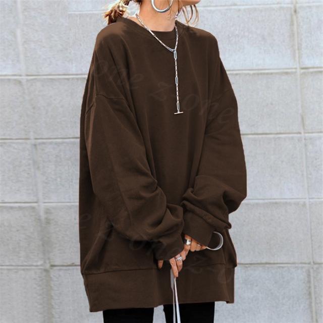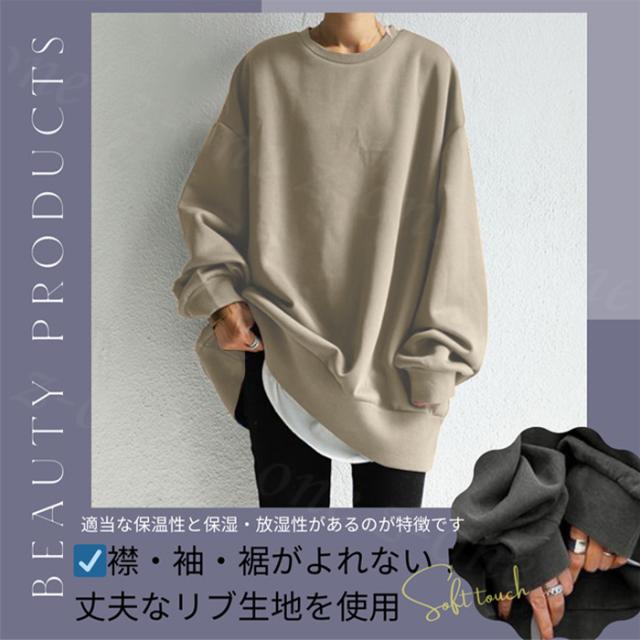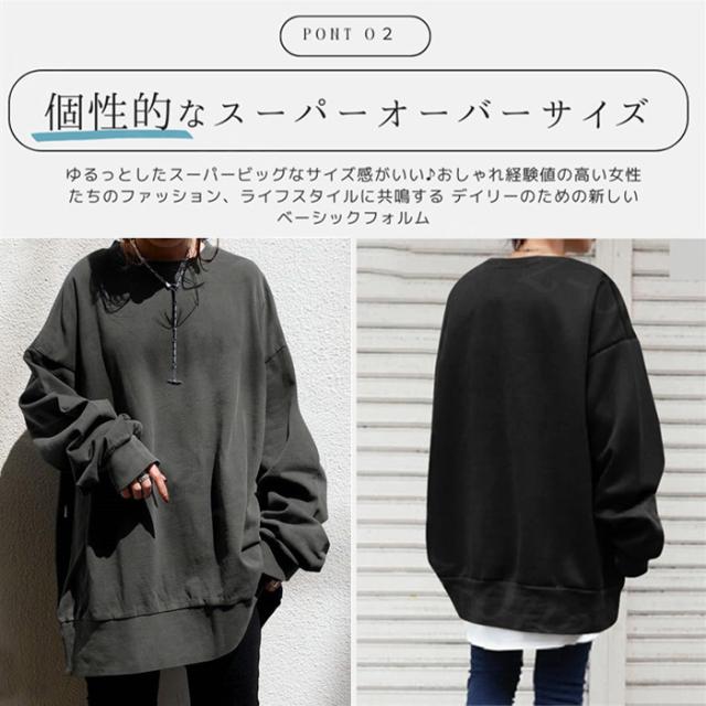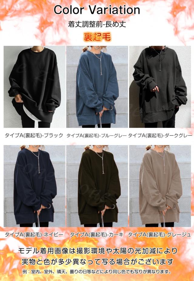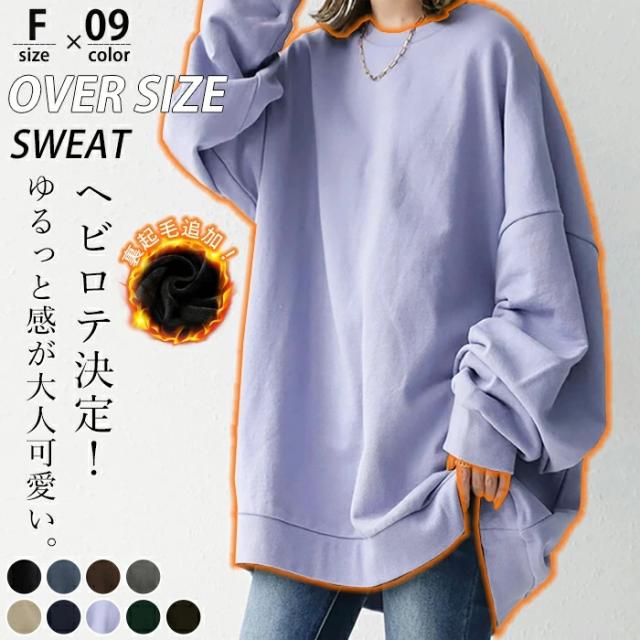 冬限定! 裏起毛追加! ゆるトレーナー ロング丈 あたっか 暖かい 長袖 レディース トップス 秋冬 秋新作 プルオーバー スウェット 無地 シンプル クルーネック 丸首 リブ ドロップショルダー ゆったり ラフ デイリー 着回し tシャツ
