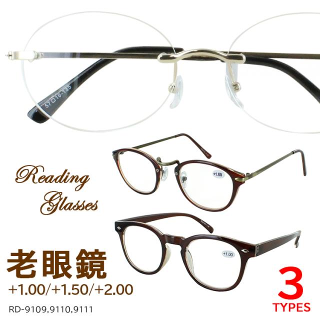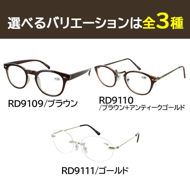 老眼鏡 レディース おしゃれ リーディンググラス シニアグラス ツーポイント フチなし ラウンド 丸メガネ RD9111 ボストン セルフレーム RD9109 ボストン コンビフレーム RD9110 軽量 女性 40代 50代 3度数 1.0 1.5 2.0 ゆうパケット 追跡メール便 送料無料