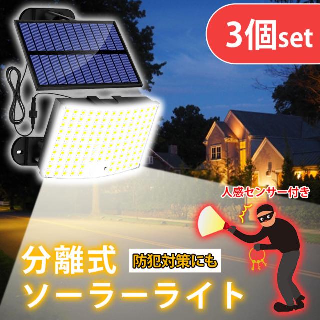 センサーソーラーライト 3個セット ソーラーライト センサーライト 268LED 分離型 防犯 屋外 ソーラーパネル ソーラー セキュリティ 壁付け 人感センサー 防犯ライト ガーデンライト リモコン付き アウトドア モーションセンサー 暗闇センサー セキュリティライト 照明 IP65