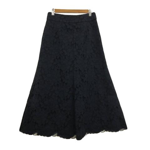 【中古】ジョルネア giornea スカート フレア ロング 花柄 レース スカラップ ナイロン 黒 紺 ブラック ネイビー