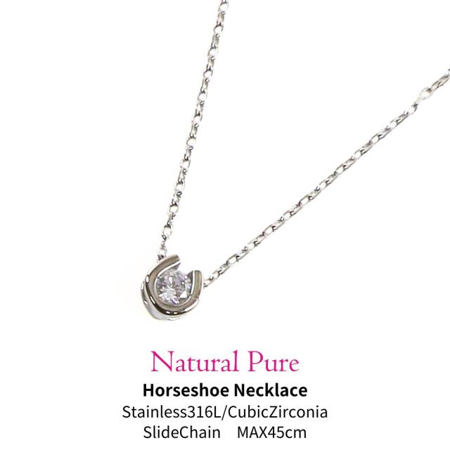 ネックレス レディース ステンレス 316l ホースシュー 馬蹄ネックレス キュービック ジルコニア シルバー シンプル 金属アレルギー対応 ギフト