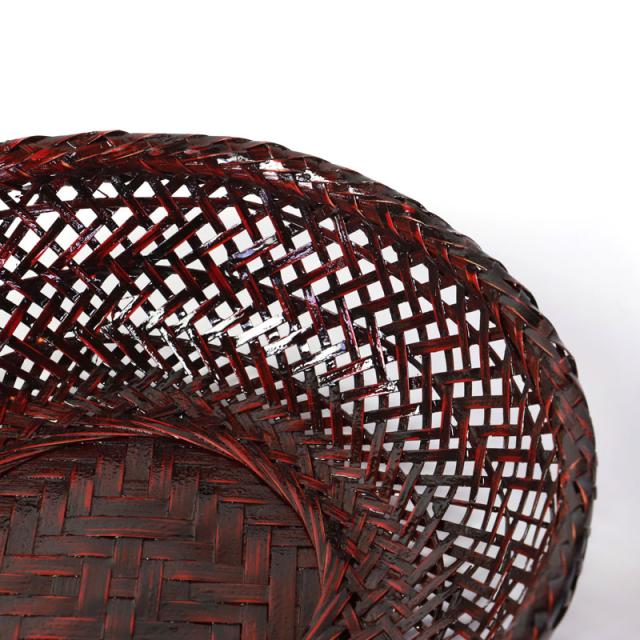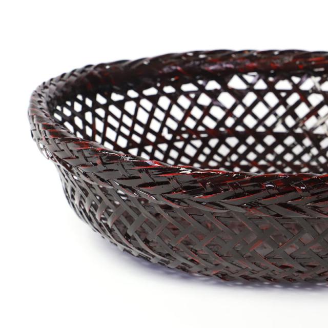 竹で編んだ器に塗りを施し、幾重にも研ぎ出して装飾加工し仕上げたぬりものです。