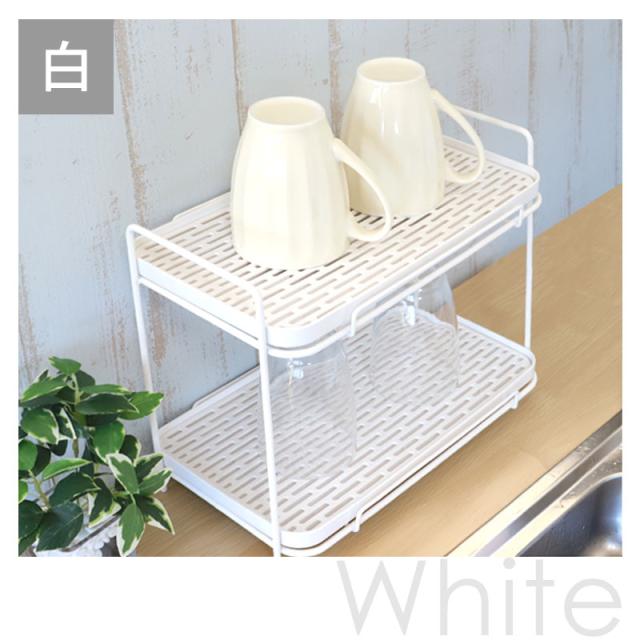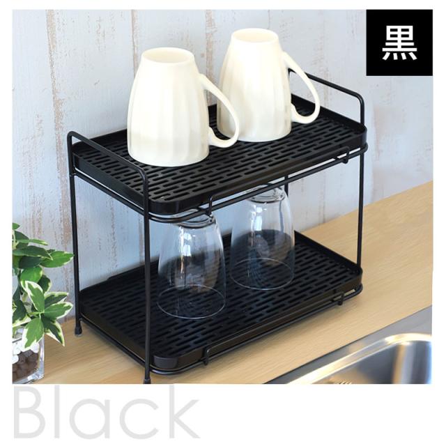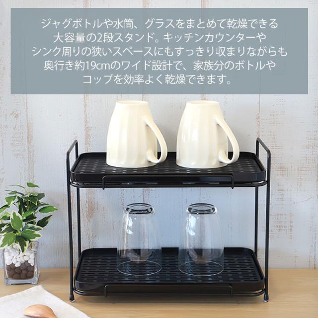 水切りラック 2段 ジャグボトルスタンド ワイドタイプ 水筒スタンド コップ マグボトル タンブラー グラス 哺乳瓶スタンド ストローマグ 水切りかご カゴ シンク上 大きめ ブラック ホワイト 黒 白 送料無料