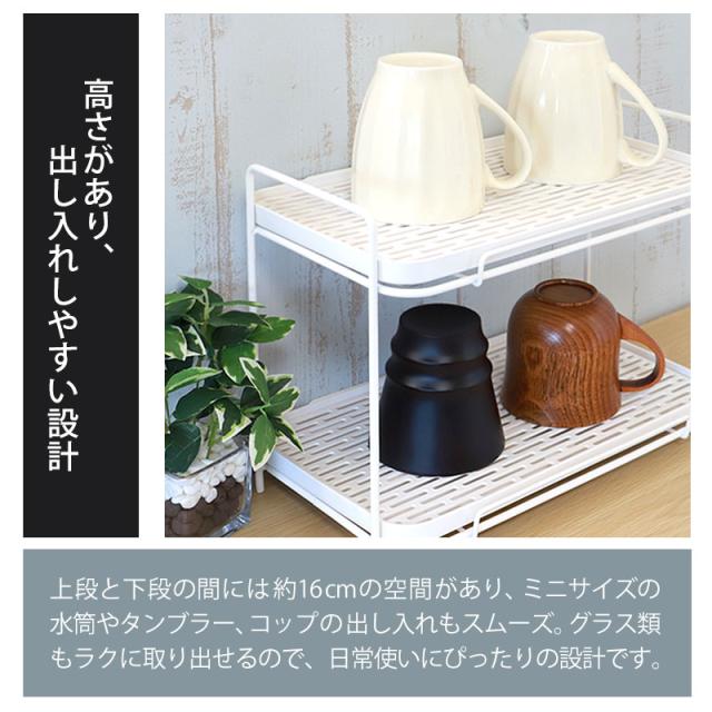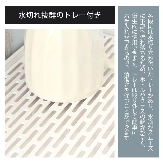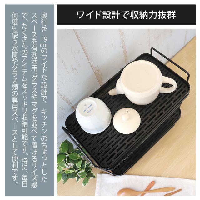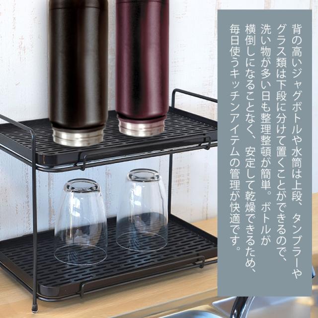 背の高いジャグボトルや水筒は上段、タンブラーやグラス類は下段に分けて置くことができるので、洗い物が多い日も整理整頓が簡単。