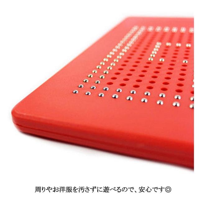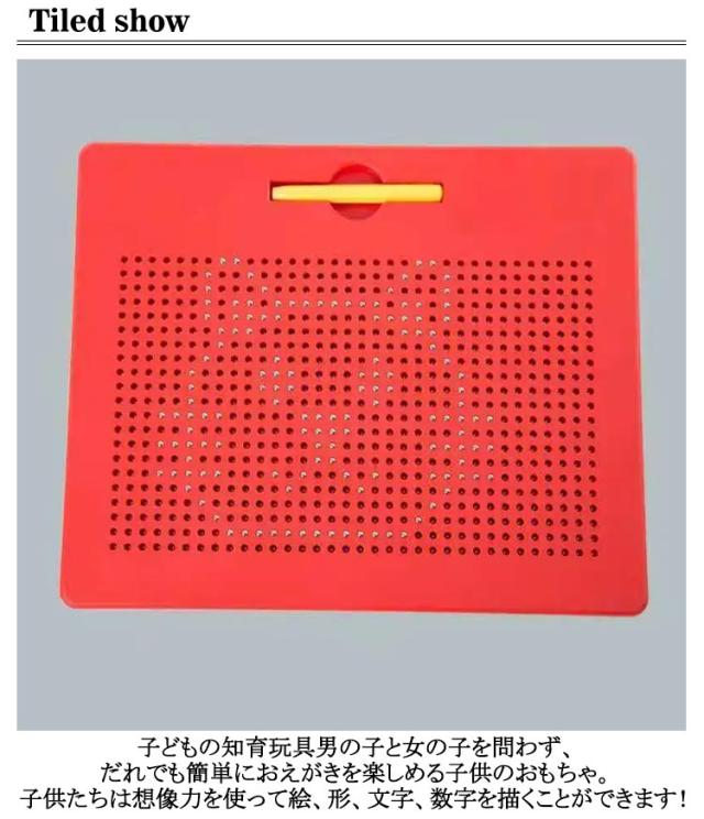 | 子どもの知育玩具男の子と女の子を問わず、だれでも簡単におえがきを楽しめる子供のおもちゃ。子供たちは想像力を使って絵、形、文字、数字を描くことができます! プラスティック製のボードに、磁石内蔵ペンで遊びます。 付属のマグネットペンでボードをなぞって中のボール(鉄球)を引き上げ、字や形、絵を描いてみよう! 金属球は磁気スタイラスペンで表面に引き付けられ、ペンや指でボールを消してやり直すことができます。 大人も子供も楽しく遊べる知育玩具のマグネットタブレットです。 周りやお洋服を汚さずに遊べるので、安心です◎ 何度でも描くことができて楽しいです♪ お誕生日プレゼントやクリスマスプレゼント、入学祝い・卒業祝いにも最適です。 | |