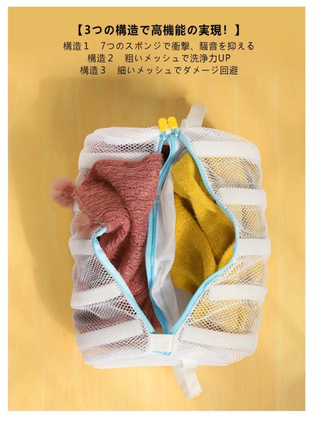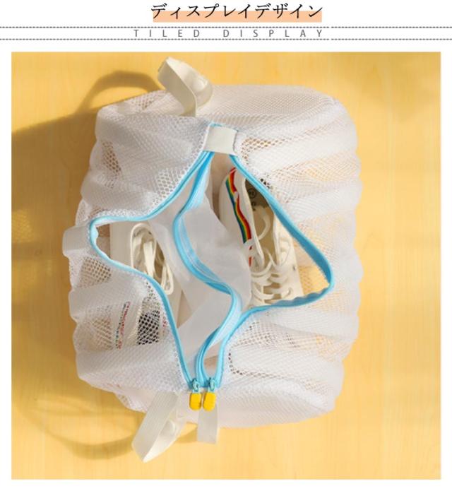 | 吊り下げ&折りたたみ可能 3つの構造で高機能の実現! 靴用円筒型洗濯ネット 2個セット 【円筒型の洗濯ネットでしっかりと汚れを落とす!】 円筒型の洗濯ネットは、平たい角型に比べ立体的な構造になっているため、 ネットの中で洗濯物が動くので汚れが落ちやすいのが特徴です。 大容量で大きいサイズのシューズ(28cm程度まで)も洗えます! 【3つの構造で高機能の実現!】 構造1 7つのスポンジで衝撃、騒音を抑える ネットを囲う様に設置された5つの円環スポンジ+2つのサイドスポンジは、 洗濯中の内外からの衝撃を吸収、靴をしっかり守り騒音も軽減します。 構造2 粗いメッシュで洗浄力UP ネット外側は網目の粗いメッシュ生地。 網目の粗いメッシュ生地は、洗剤や水が十分に行き届き、汚れが落ちやすくなります。 構造3 細いメッシュでダメージ回避 ネット内側の仕切り部分は網目の細いメッシュ生地。 網目の細いメッシュ生地は、ネット内での洗濯物同士の絡み合いや摩擦を抑え、洗濯物の損傷を防ぎます。 ネットの内部はダブルポケットになっていて、靴を分けて洗濯できるのでよりダメージを軽減できます。 便利なダブルファスナーとファスナー収納カバー 【掛け紐付きでそのまま干せる!】 掛け紐が付いているので、洗濯が終わったらそのままネットごと干し竿などに吊るして干せます。 ●水はけ抜群のメッシュ生地なのでネット自体も乾きやすい ●2個のスナップで吊り高さも調整できる まだまだ、ここもすごい! 衣類にも使える 折りたたみ可 | |