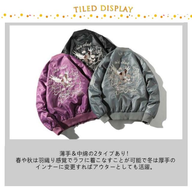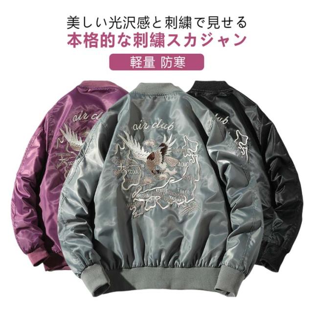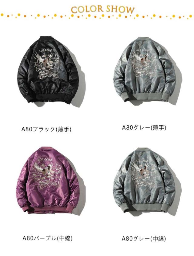 刺繍 スカジャン スカジャン 暖かい 和柄 フライトジャケット 光沢 メンズ サテン ブルゾン ブルゾン ジャンパー MA-1 スカジャン 中綿 ジャケット アウター 軽量 防寒 防風 アメカジ ヴィンテージ 春 秋 冬