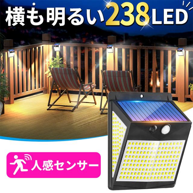 ソーラーライト センサーライト LEDライト ライト ガーデンライト 人感センサー 防犯 セキュリティ 防犯グッズ ソーラー ソーラーパネル 防水 壁付け 屋外 庭 ライトアップ 自動点灯 明るい 照明 238LED 簡単 屋外照明 太陽光発電 おしゃれ 電気代0円