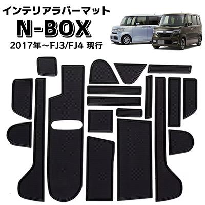N-BOX JF3 JF4 NBOX インテリアラバーマット 車種専用設計 ドアポケットマット ノンスリップマット フロアマット コンソールマット ゴムマット 内装パーツ 耐久性 防水 汚れ防止 騒音防止 車の滑り止め アクセサリー 保護カバー 19ピース ブラック×ブラックライン
