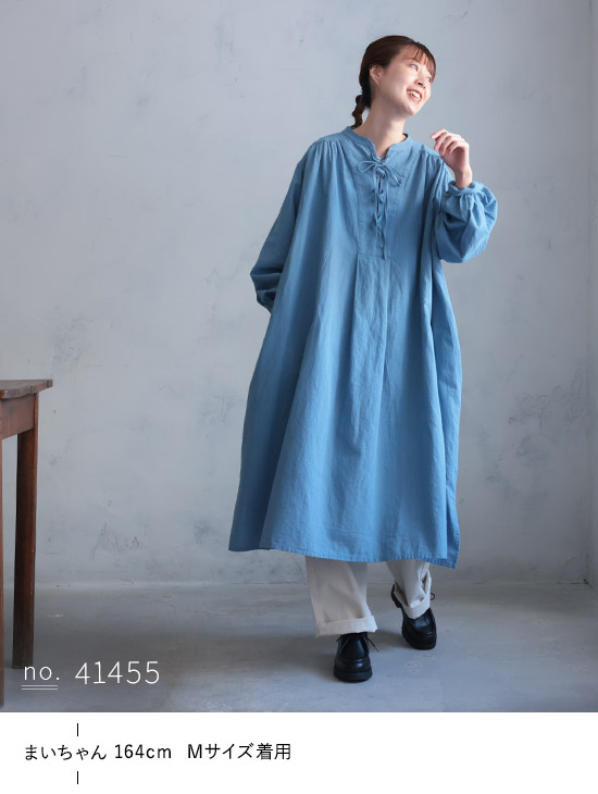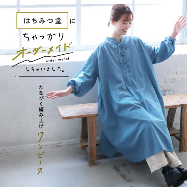 はちみつ堂 たなびく編み上げワンピース レディース ロング 長袖 Aライン フレア レースアップ スキッパー風 麻混 リネン混